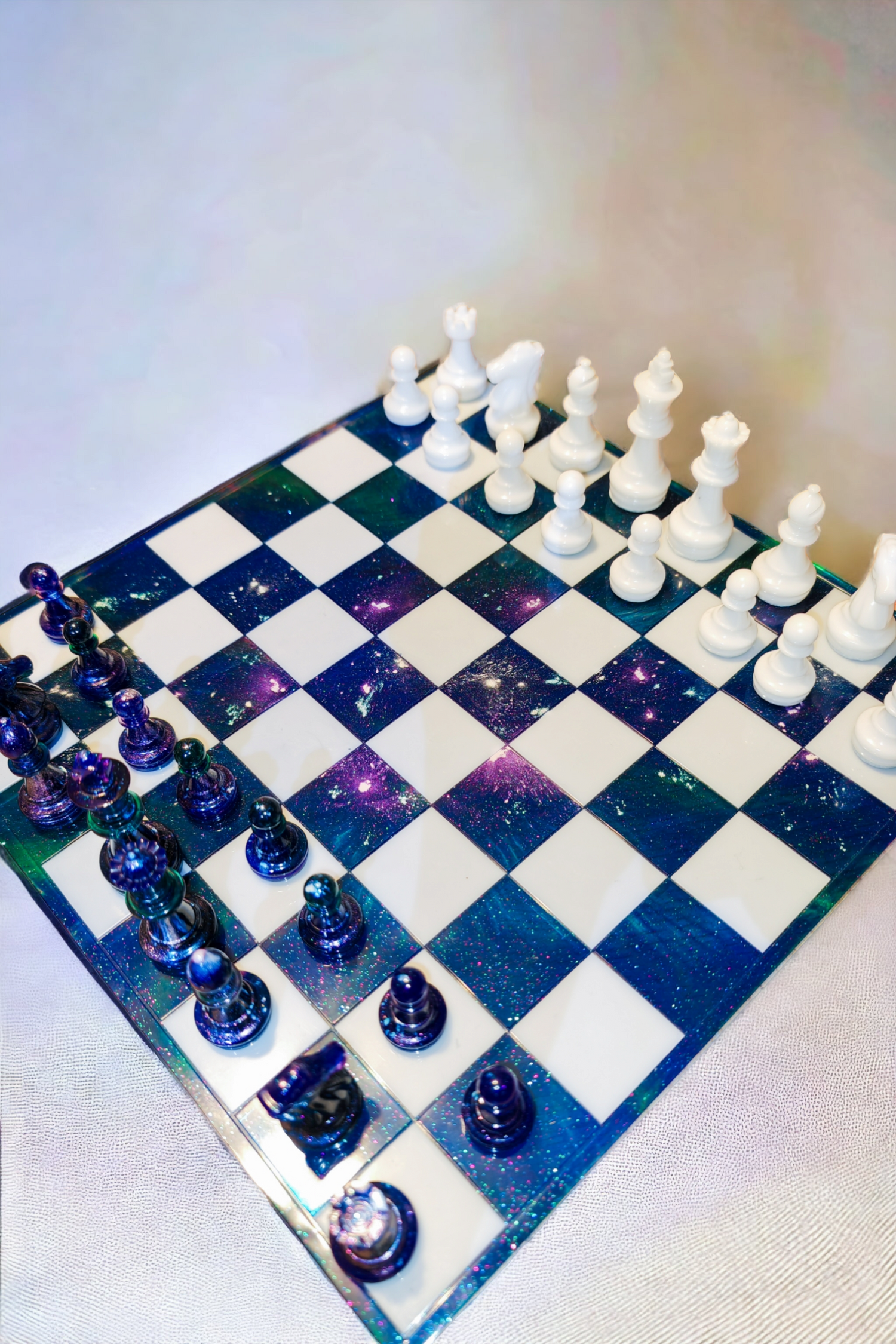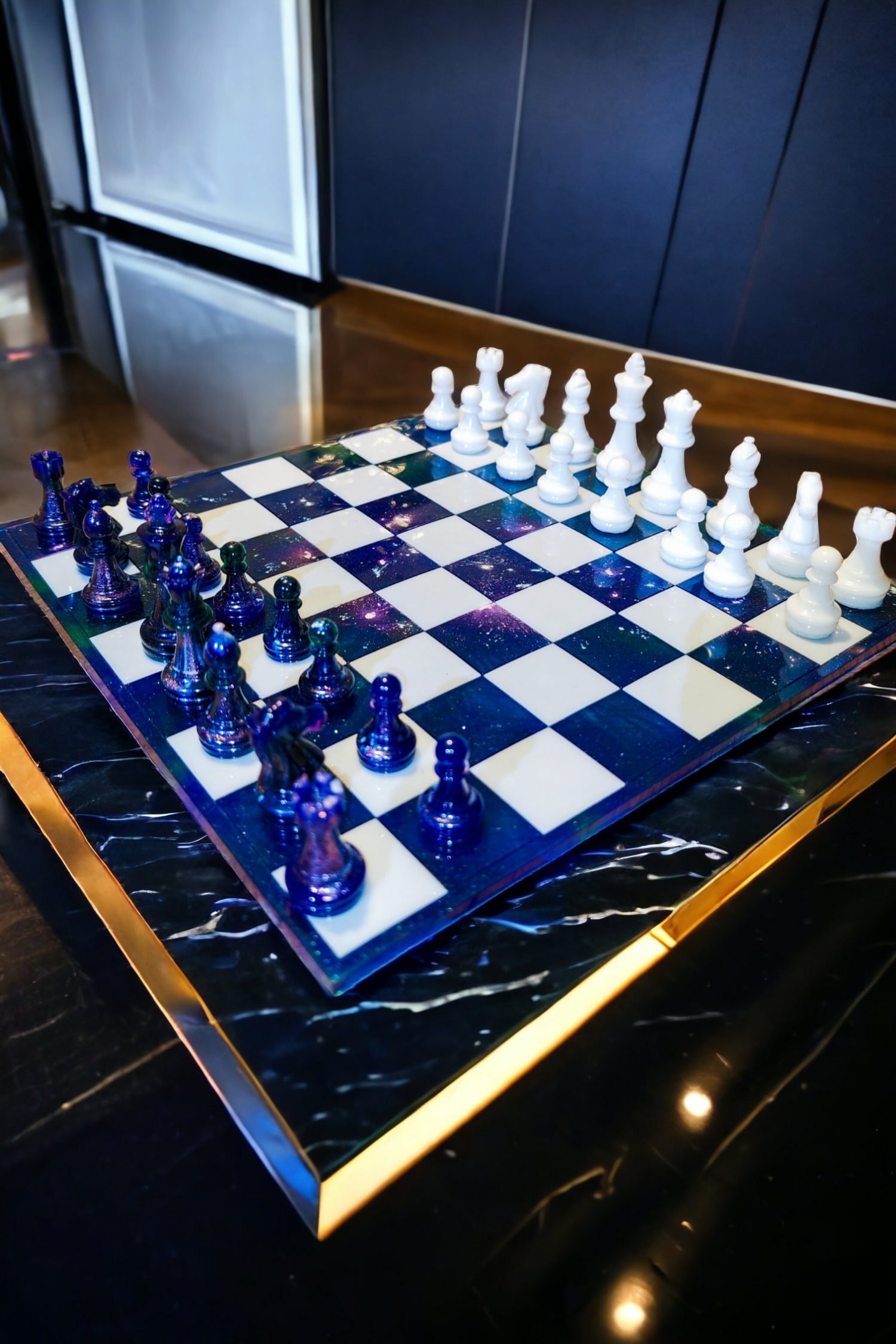 Échiquier en résine époxy style Galaxy.