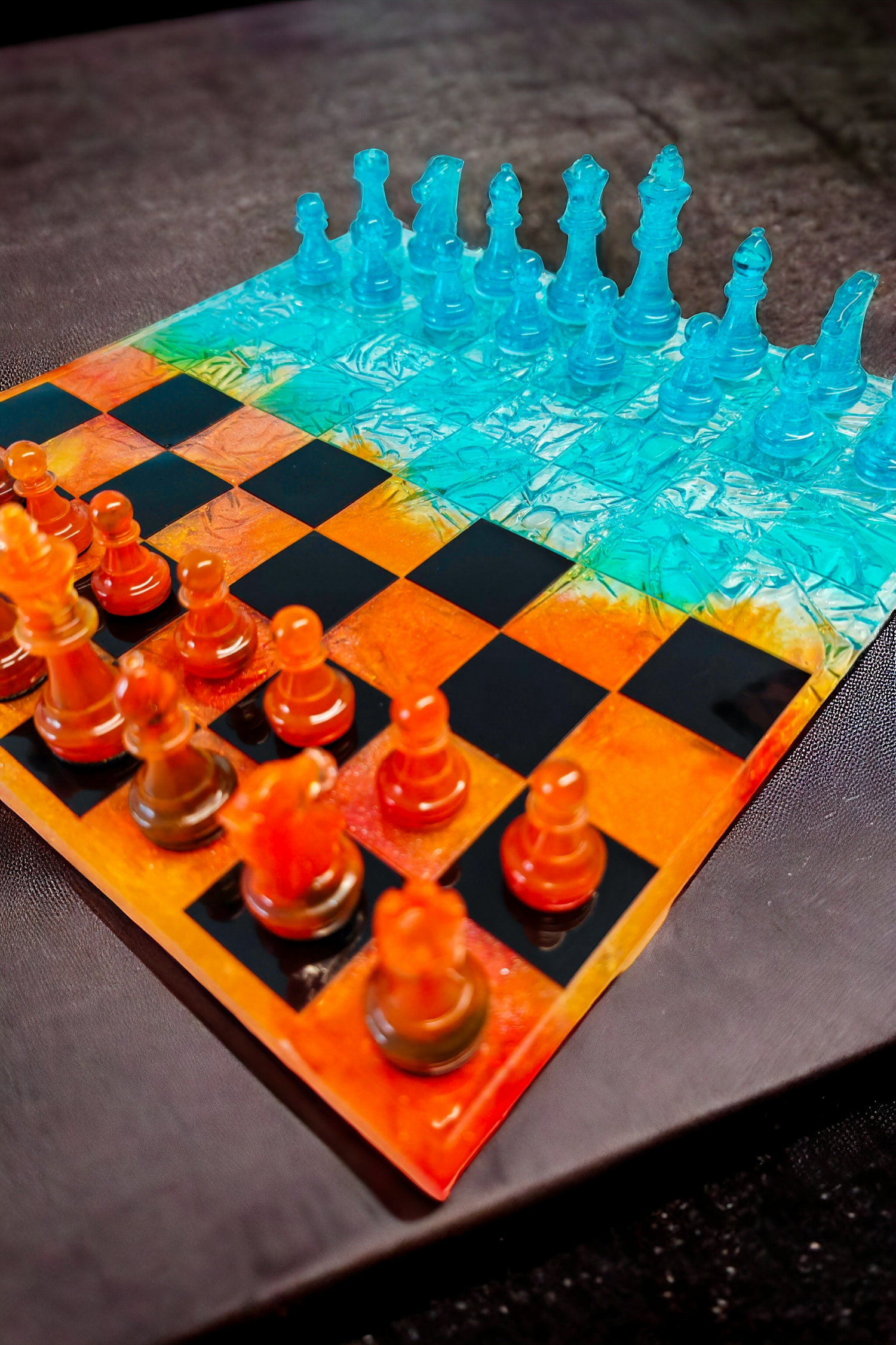 Échiquier en résine époxy style glace et feu ✨