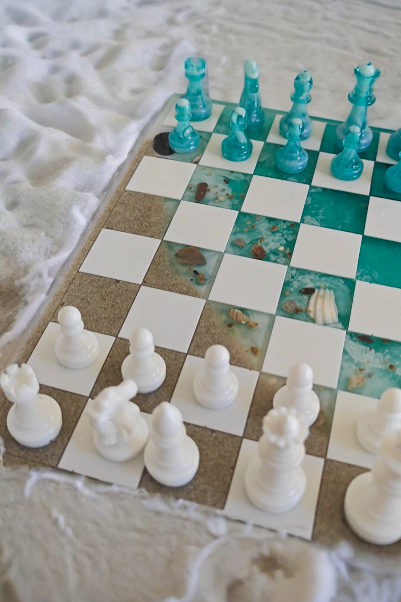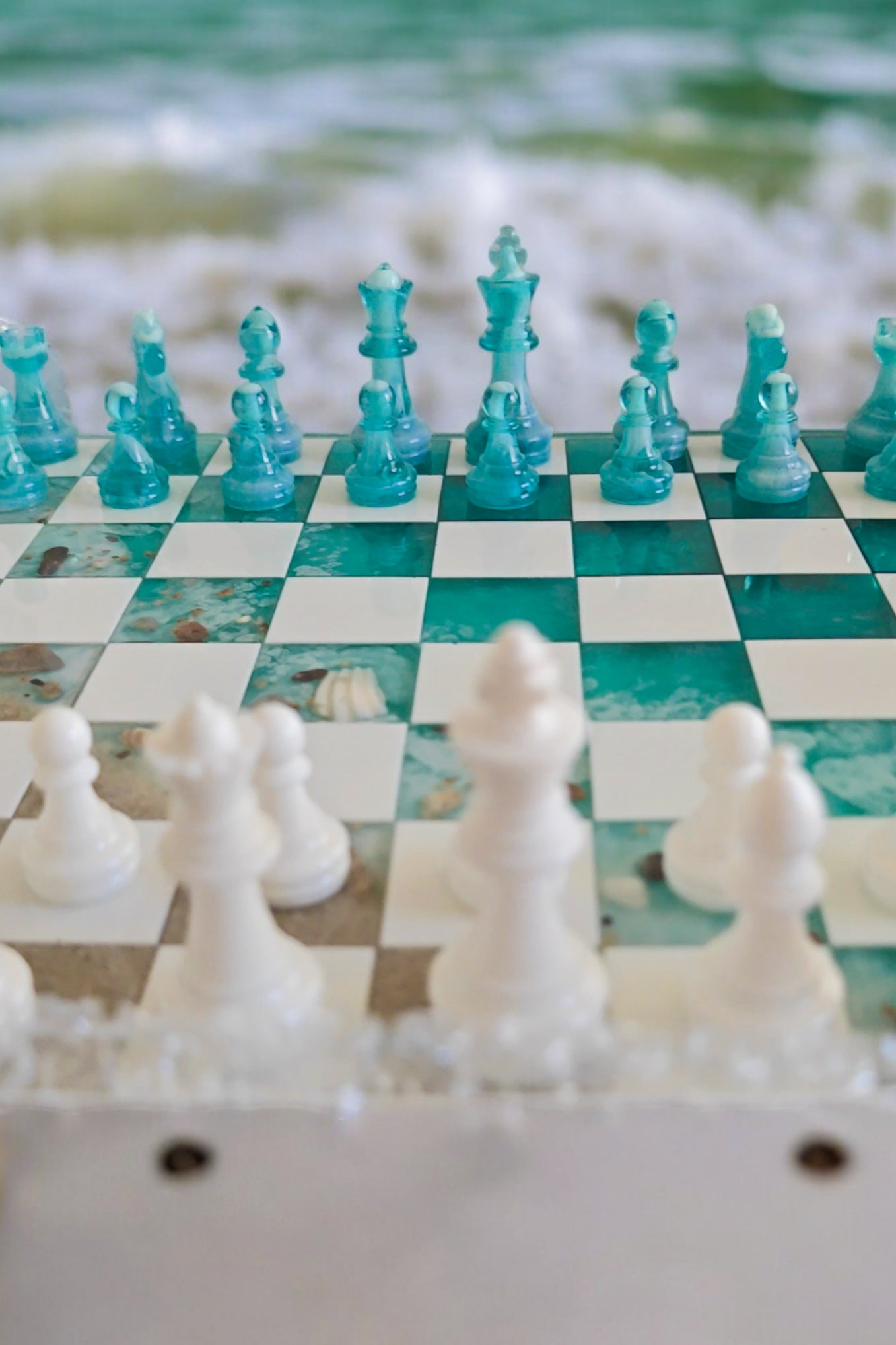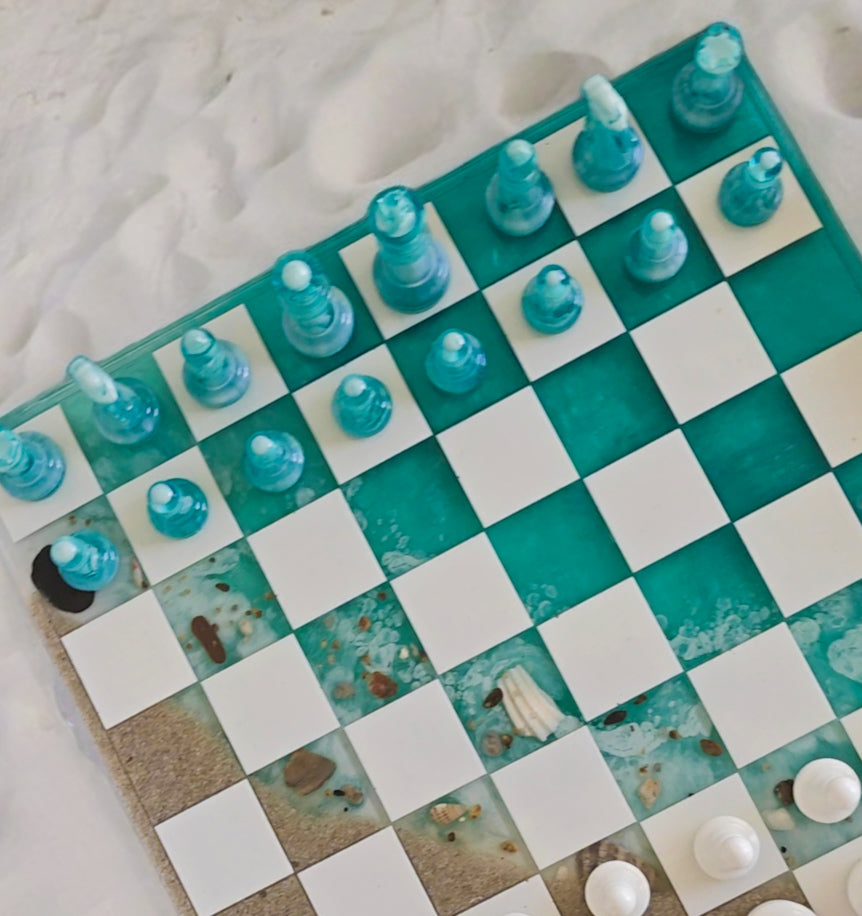 Échiquier en résine époxy style plage.