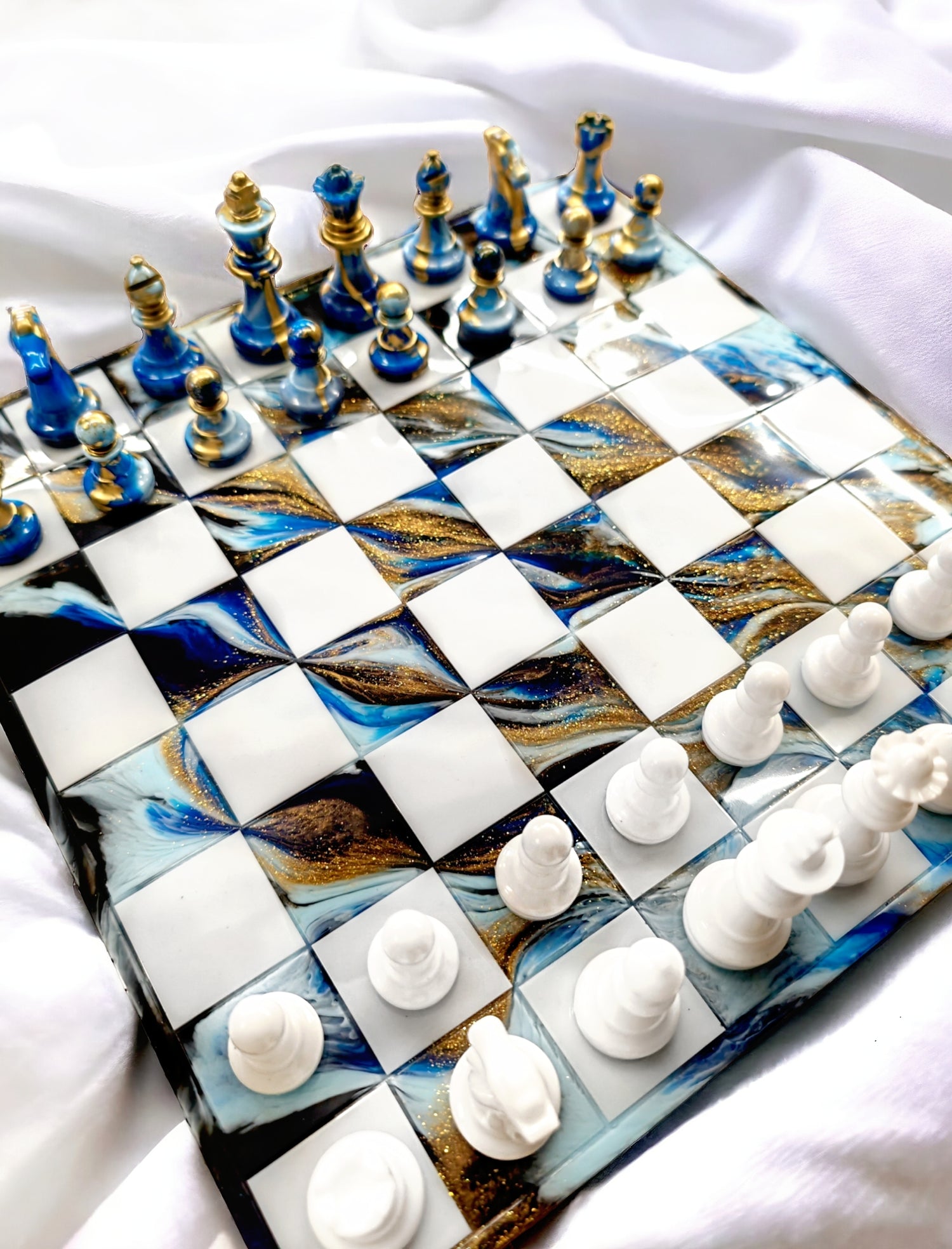 Échiquier en résine époxy style pietersite.